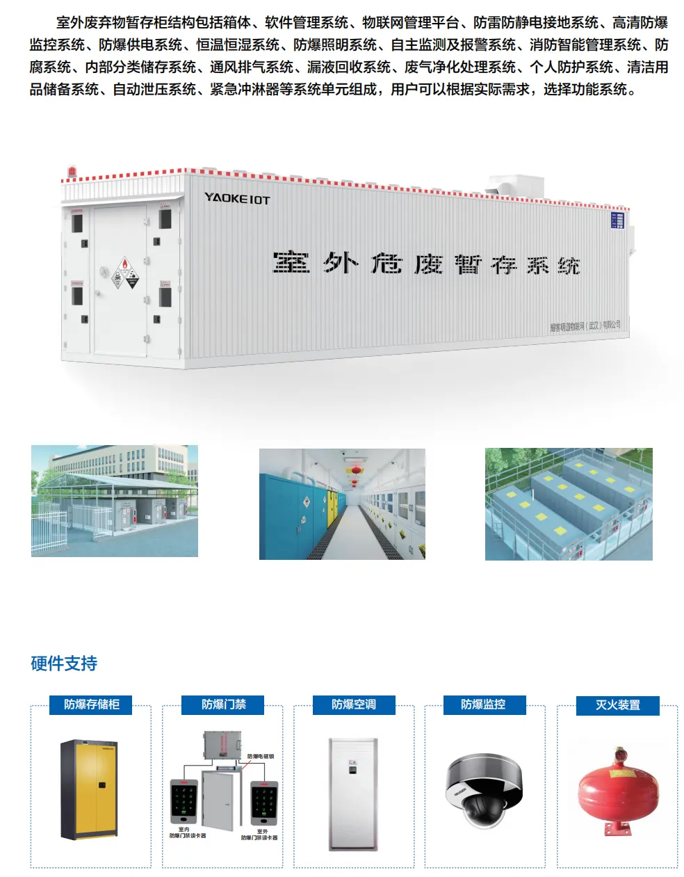 室外暂存柜通常具有防火、防爆、防渗漏、防水、耐一定腐蚀等特性,以确保在极端气候条件下,如高温、恶劣天气等情况下,柜内的化学品仍然能够安全存储而不对周围环境造成危险。